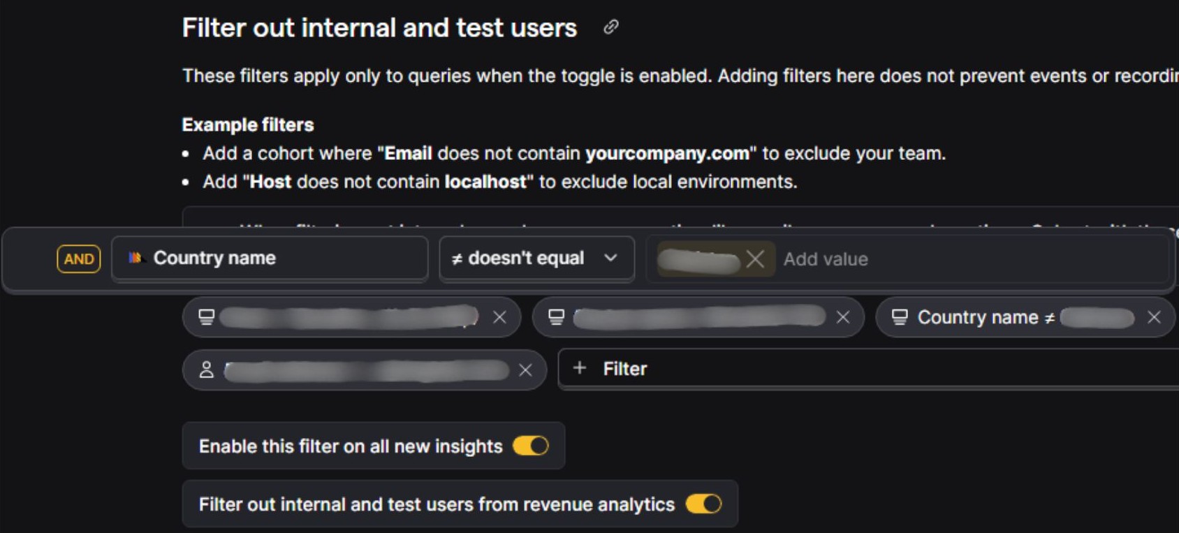 Internal user filtering based on Country Name (exclude regions your team operates from):